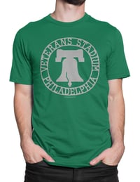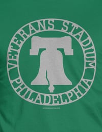 Now you can show just how much you love Philly sports with this t-shirt displaying the famous Veterans Stadium logo in Philly football colors!